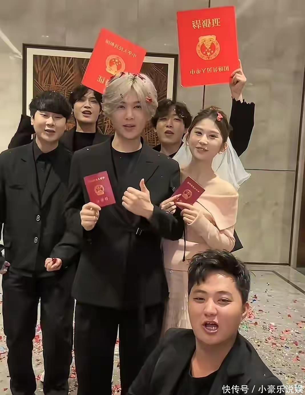 凌达乐与女友“兔兔饿了”长达八年的感情故事,成为这次事件中备受关注的另一焦点。 两人相识于凌达乐尚未成名的低谷期,女友在他事业未起色时便选择相伴左右。2025年1月17日,凌达乐高调策划了一场奢华的求婚仪式,现场布置了粉色花墙、巨型白兔玩偶和烟花秀,他单膝跪地向女友承诺一生。 8月8日,两人又举办了传统中式订婚宴,身着中式礼服甜蜜互动。这场订婚宴的布景被眼尖的网友发现与黄子韬2023年的求婚现场高度相似,白色城堡、T形舞台、巨型花墙的相似度超过80%,引发了一番讨论。在领证视频发布后12小时内,“鹿哈领证”话题收获了超过28万条祝福评论,“爱情长跑”成为高频词。 凌达乐团队中的成员黄子诚、赵大博也纷纷发布视频恭喜,表示在现场见证了两人领证的过程。